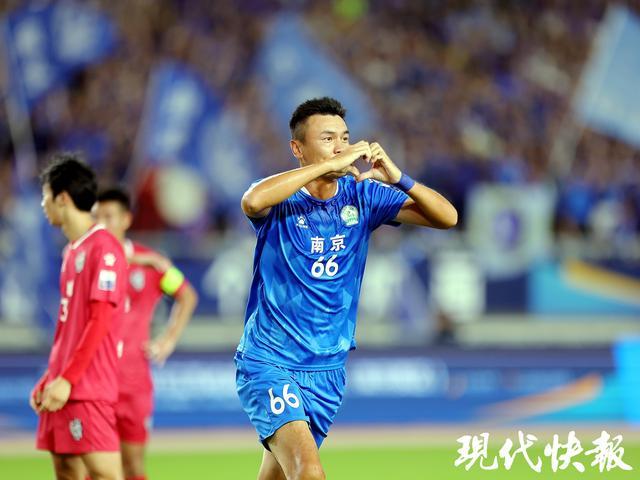 不过,戈伟在苏超上的精彩表现远不止这些。8月17日,苏超第9轮,南京队坐镇奥体中心迎战盐城队,60633名球迷再创苏超现场观赛纪录。这场比赛,南京队一度1:2落后,替补登场的戈伟在第65分钟和第78分钟两度头球破门,帮助球队扳平比分、反超比分,从同为四强的盐城队手中夺走了宝贵的3分。60633名球迷的呐喊响彻南京奥体,戈伟成了南京队的“城市英雄”。