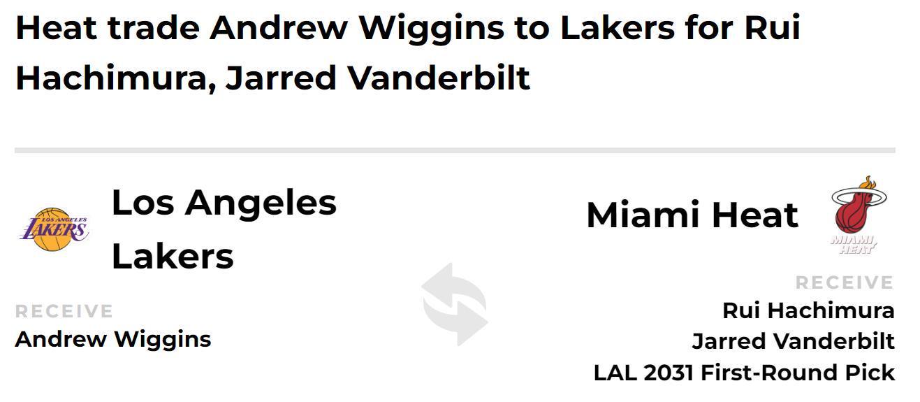 热火得到:八村垒+范德比尔特+湖人31年首轮签。